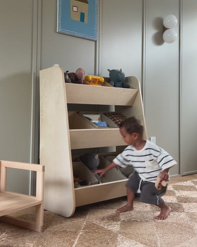 The Toy Organizer is designed to make toy storage simple, accessible, and supportive of independent routines. With open, easy-to-reach compartments, this kids toy organizer allows toddlers to see, select, and return their toys on their own—encouraging responsibility and confidence through everyday cleanup.